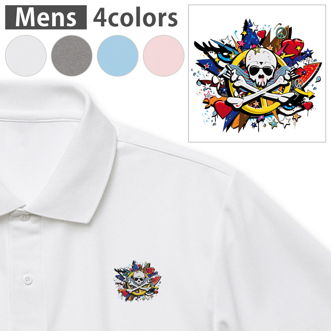 選べる4カラー メンズ ドライポロシャツ 鹿の子 メンズ 半袖 ホワイト グレー ライトブルー ベビーピンク ワンポイントデザイン Polo shirt シワが付きにくい 乾きやすい XS S M L XL 2XL 3XL 4XL 5XL 017911 ワンポイント ストリートアート ドクロ 骸骨 スプレーアート