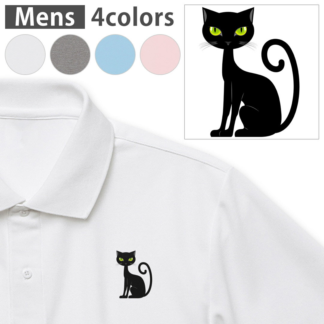 選べる4カラー メンズ ドライポロシャツ 鹿の子 メンズ 半袖 ホワイト グレー ライトブルー ベビーピンク ワンポイントデザイン Polo shirt シワが付きにくい 乾きやすい XS S M L XL 2XL 3XL 4XL 5XL 017977 ワンポイント 猫 黒猫 イラスト