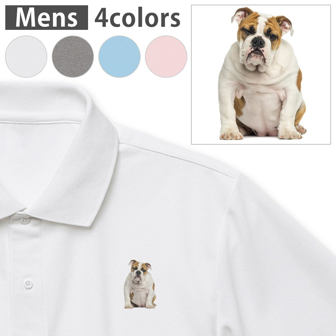 選べる4カラー メンズ ドライポロシャツ 鹿の子 メンズ 半袖 ホワイト グレー ライトブルー ベビーピンク ワンポイントデザイン Polo shirt シワが付きにくい 乾きやすい XS S M L XL 2XL 3XL 4XL 5XL 017983 ワンポイント 犬 ブルドッグ 可愛い 動物