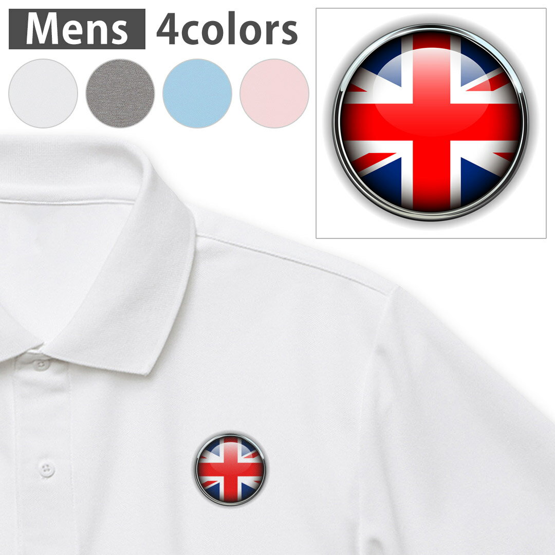 選べる4カラー メンズ ドライポロシャツ 鹿の子 メンズ 半袖 ホワイト グレー ライトブルー ベビーピンク ワンポイントデザイン Polo shirt シワが付きにくい 乾きやすい XS S M L XL 2XL 3XL 4XL 5XL 018015 ワンポイント 国旗 ユニーク イギリス ユニオンジャック