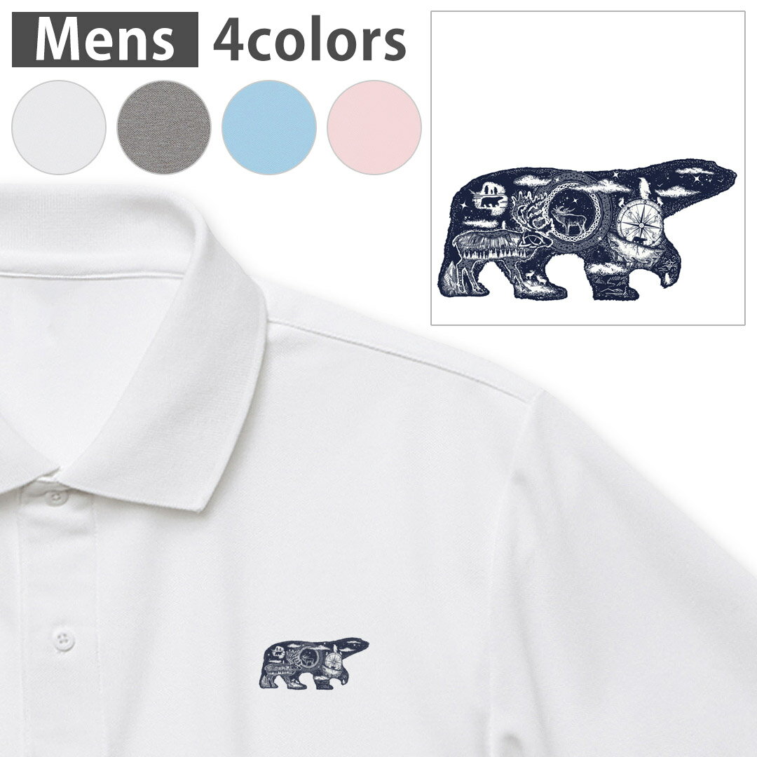 選べる4カラー メンズ ドライポロシャツ 鹿の子 メンズ 半袖 ホワイト グレー ライトブルー ベビーピンク ワンポイントデザイン Polo shirt シワが付きにくい 乾きやすい XS S M L XL 2XL 3XL 4XL 5XL 018032 ワンポイント シロクマ 白熊 シルエット 星空 キャンプ