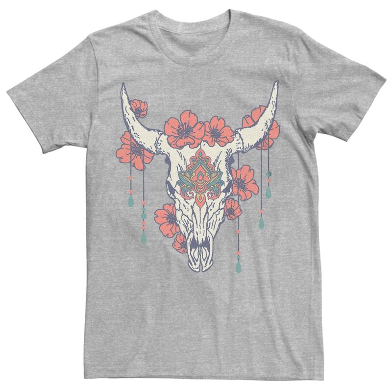【送料無料】 ライセンス キャラクター メンズ Tシャツ トップス Men's Boho Henna Skull Flowers Graphic Tee Athletic Heather