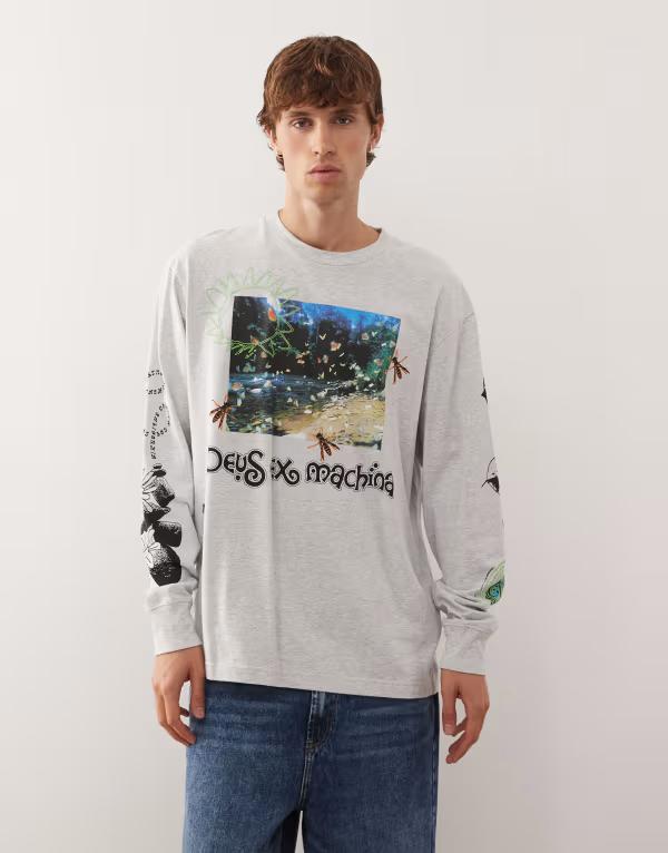 デウス エクス マキナ メンズ トップス Tシャツ プリント シャツ レース Deus Ex Machina migration long sleeve t-shirt with placement prints WHITE ホワイト