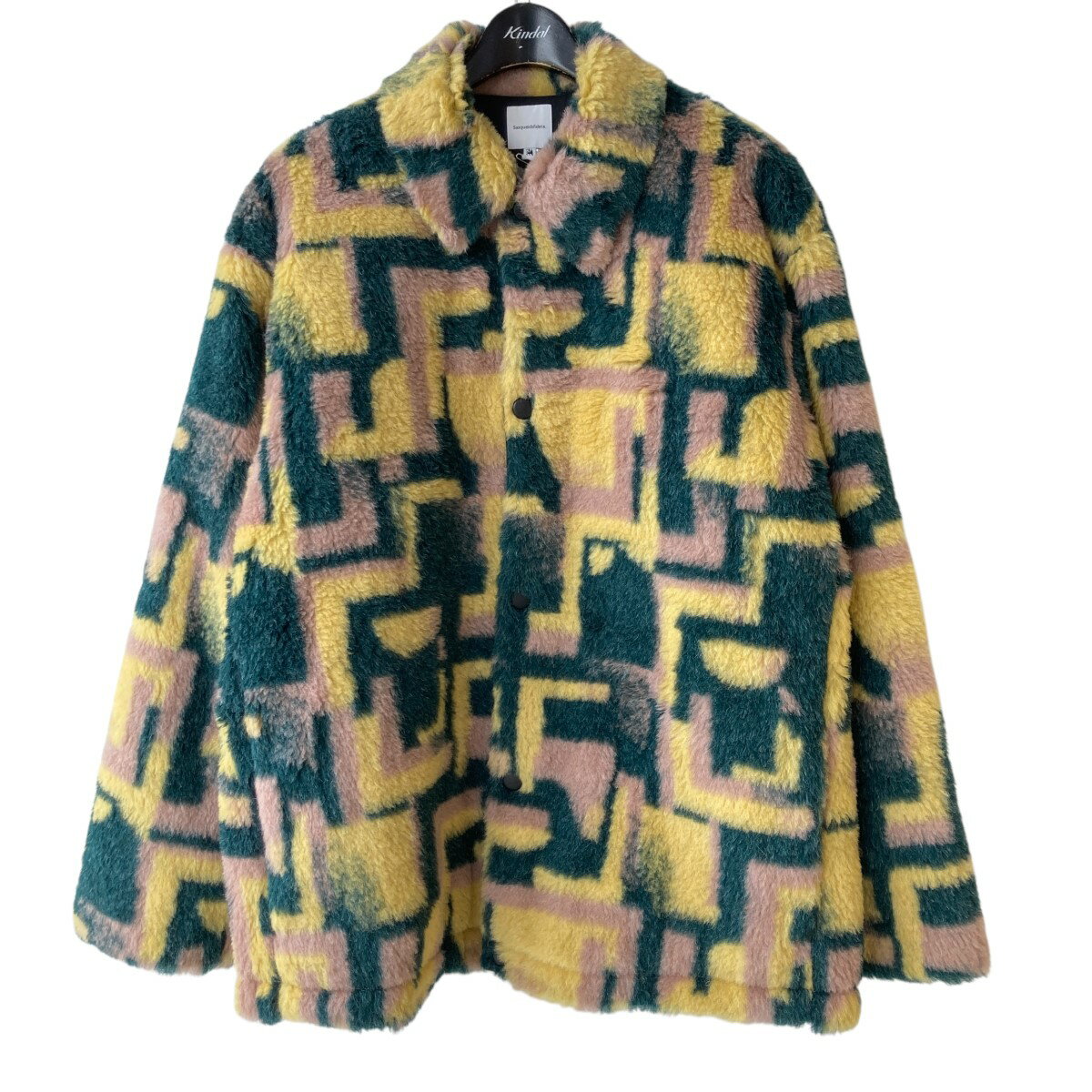 【中古】SASQUATCHfabrix.24AW FUR COACH JACKET 総柄 ファーコーチジャケット 24AW-JKH-004 グリーン、イエロー サイズ:XL【価格見直し】