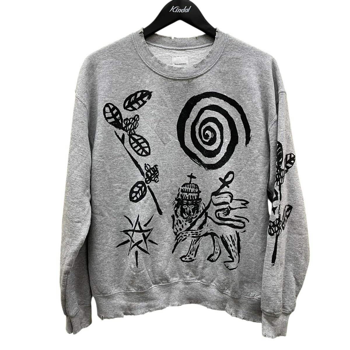 【中古】SASQUATCHfabrix. エチオピアプリントヴィンテージスウェットシャツ 23SS-CSS-004 グレー サイズ:M 【101125】(サスクワァッチファブリックス.)