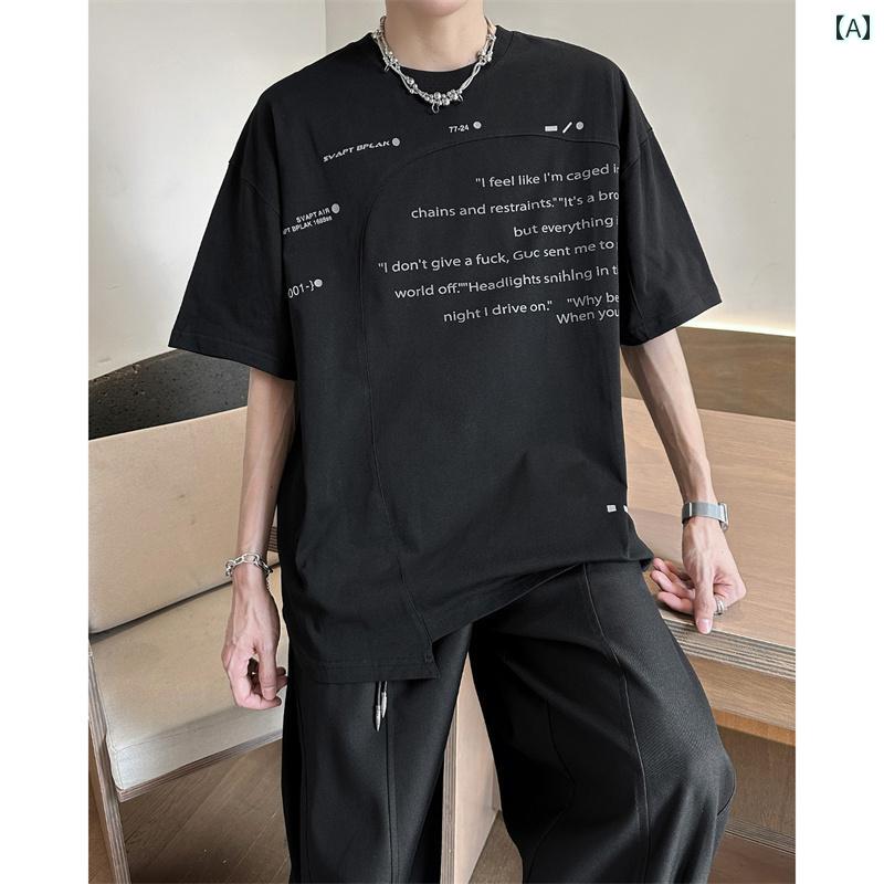 ・カテゴリ: 半袖Tシャツ・スタイル: アメリカンスタイル・性別: メンズ・対象: 若者・主な素材: ポリエステル混紡 (ポリエステル75~95%)・ネックライン: クルーネック・袖丈: 半袖・袖タイプ: ドロップショルダー・柄: 文字プリント・シルエット: ルーズフィット・デザイン: プルオーバー・厚さ: 標準・加工: パッチワーク、切り替え・シーン: カジュアル・重量: 約250g~300g未満・カラー展開: ブラック、ホワイト・サイズ展開: M、L、XL、2XL