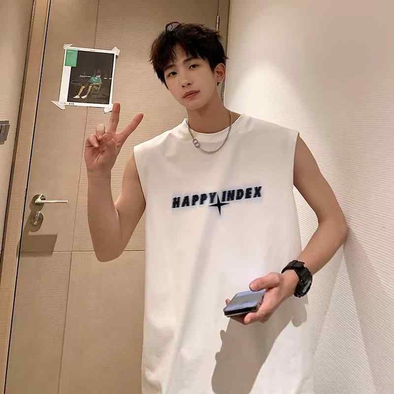 タンクトップ メンズ ゆったり ストリート系 レタープリント 綿 コットン 夏 薄手 軽量 スポーツウェア バスケットボール 普段使い ノースリーブ Tシャツ トップス