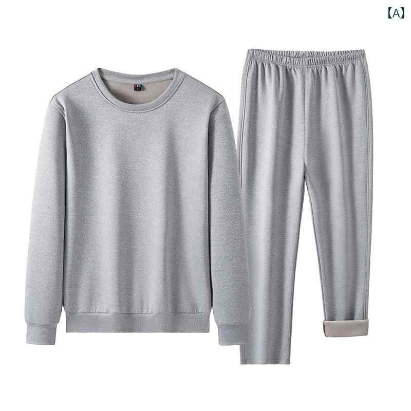 メンズ セットアップ 秋冬 裏起毛 厚手 クルーネック 長袖 ロングパンツ フードなし ポケットなし ドローストリングなし 金属不使用 カジュアル スポーツ シンプル ミニマル 普段使い リラックス ポリエステル混紡