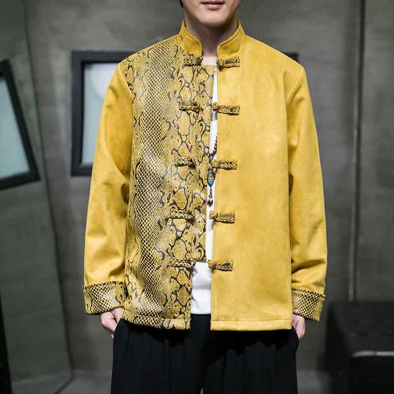 漢服 唐装 メンズ 中国風 レトロ 盤ボタン 切り替え フェイクスエード カジュアルスタイル ジャケット アウター 羽織もの 春秋 黄色 黒色 橙色