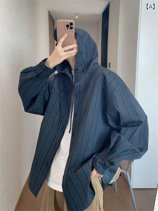 メンズ ファッション 春夏 秋冬 かっこいい オシャレ モテ 男性用 紳士服 服 韓国 シンプル 大人 春夏 ファッション フード付き ストライプシャツ メンズ シルエット ゆったり 薄手 ジャケット 休暇 日焼け防止 スーツ