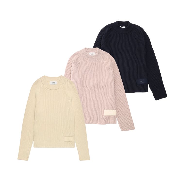【AMI PARIS】アミ パリス AMI ALEXANDRE MATTIUSSI CREWNECK HKS024.KN0031 クルーネック セーター アイボリー ブルー ピンク コットン ウール ユニセックス メンズ レディース シンプル 上品 おしゃれ ブランド