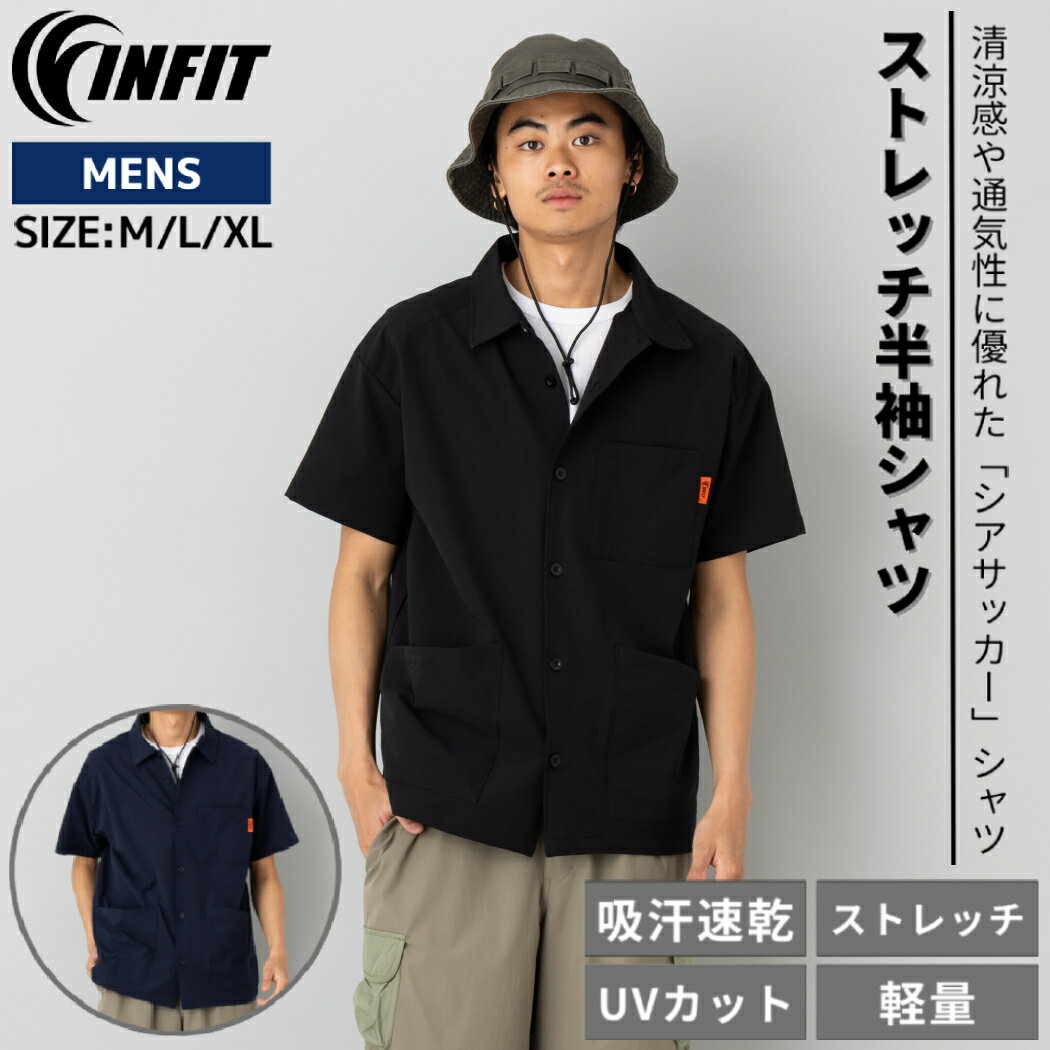 インフィット INFIT ストレッチ半袖シャツ メンズ 春 夏 カジュアル アウトドア 登山 キャンプ フェス UV対策 UVケア 吸汗速乾 AI24352