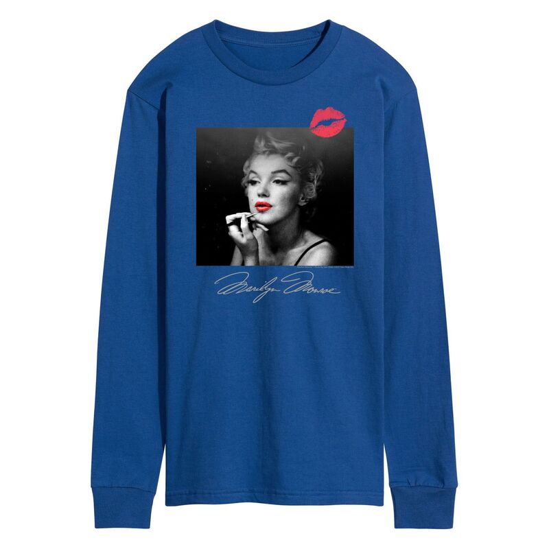 【送料無料】 ライセンス キャラクター メンズ Tシャツ トップス Men's Marilyn Monroe Hollywood Long Sleeve Blue