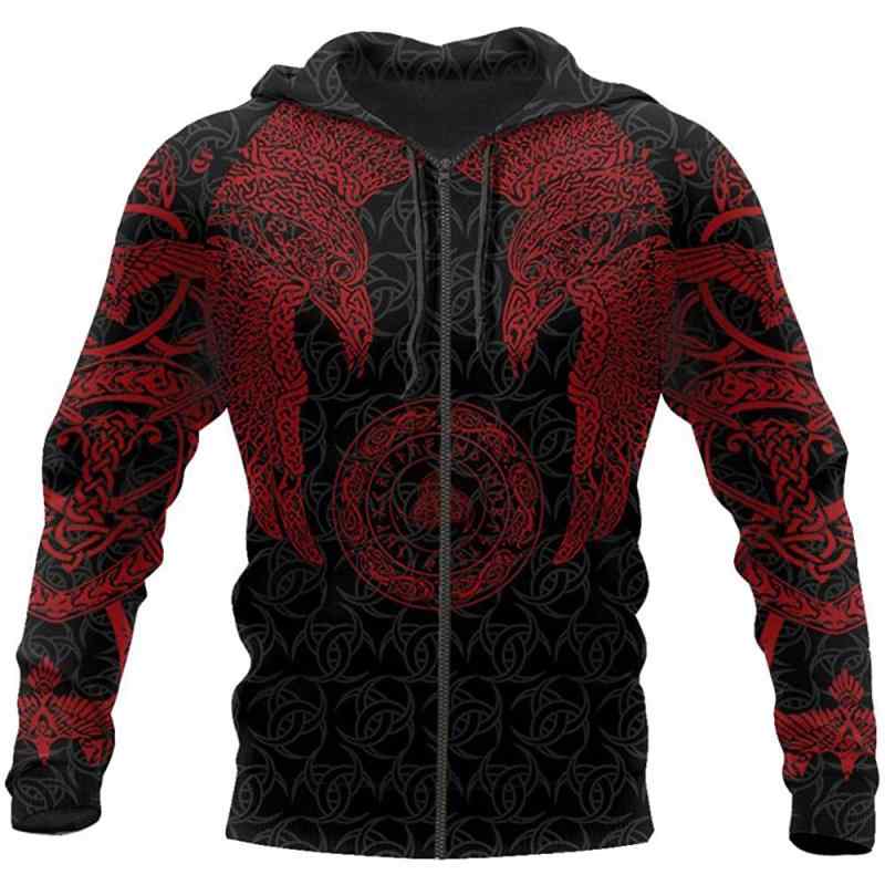 パーカー フーディー メンズ ヴァイキング ウォリアー タトゥーデザイン プリント ジップアップ スポーツウェア カジュアル ストリート ルーズフィット ビッグシルエット ヒップホップ ポリエステル 長袖 春秋 フード付き