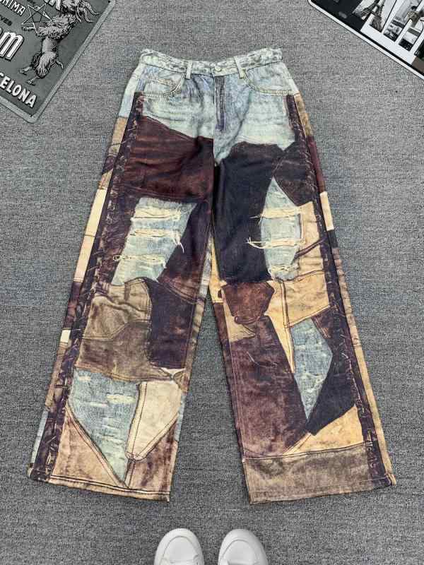 デニム メンズ ストレートジーンズ プリント柄 アメリカンカジュアル 伸縮性なし ポリエステル混紡 カラフル 普段使い