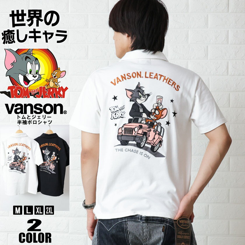【告知 12/1 激熱20%OFFクーポン!】TOM&JERRY トムとジェリー 半袖 ポロシャツ メンズ VANSON トップス コラボ 刺繍 おしゃれ 綿100 天竺 バイカー アメカジ tjv-2510