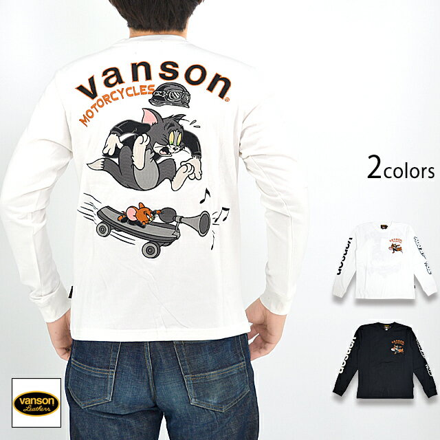 vanson×TOM&JERRYコラボ 天竺ロングTシャツ vanson TJV-2303 バンソン ヴァンソン トムとジェリー 刺繍 長袖