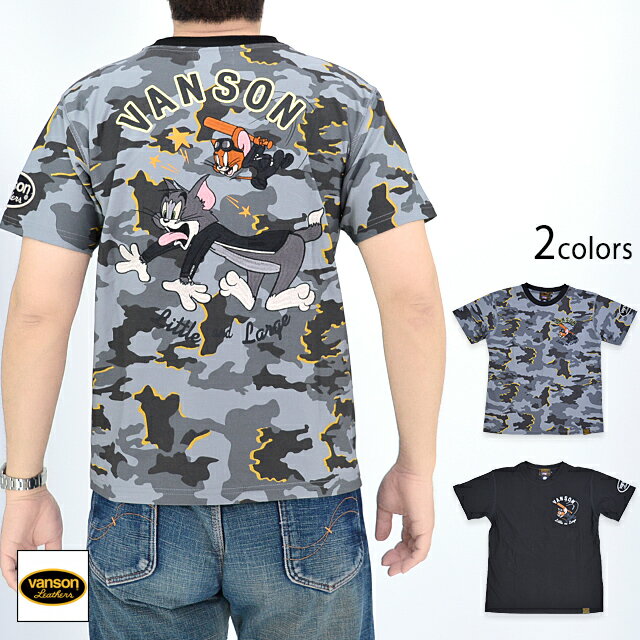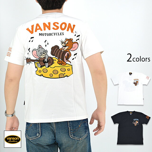 vanson×TOM&JERRYコラボ 天竺半袖Tシャツ vanson TJV-2328 バンソン ヴァンソン トムとジェリー 刺繍 バイカー[new]