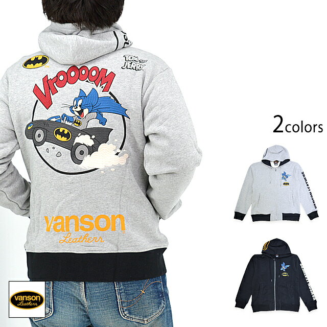 vanson×TOM&JERRY WARNER BROS.100周年記念モデル 裏毛フルジップパーカー vanson TJV-2440 バンソン ヴァンソン トムとジェリー[new]