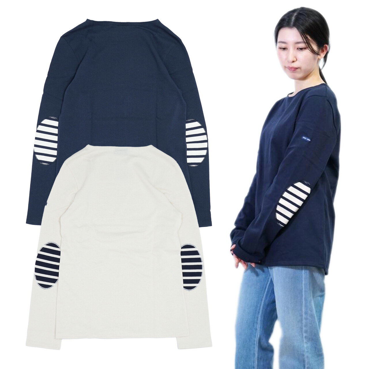 【ブランド名】 SAINT JAMES セントジェームス 【商品名/型番】 長袖 Tシャツ ロンT 無地 SAINT JAMES MERID MOD U COUD 0844 エルボーパッチ ボーダー レディース ユニセックス メンズ 【カラー】 Navy Ecru Navy ネイビー系 Ecru Navy Ecru ホワイト系 【素材】 コットン100% 【サイズ(約)】 ※採寸方法による多少の誤差はご了承ください。 M:着丈70cm/身幅47.5cm/肩幅44.5cm/袖丈68cm L:着丈72cm/身幅50cm/肩幅46cm/袖丈69cm XL:着丈74cm/身幅53cm/肩幅48cm/袖丈71cm 【商品説明】 セントジェームスから人気のカットソーが入荷。メリディアンモダンにエルボーパッチがデザインされた長袖カットソー。 定番アイテムとして長く愛用できます。 【洗濯についてのご注意とお願い】 セントジェームスのコットンシャツを長く大切に着ていただくにあたり、商品のお洗濯についてはケアラベルに従ってご対応いただくことを推奨しておりますお洗濯の際は、洗剤液に長時間浸けたままにせず、できるだけ直射日光を避け、裏返しにして干すようにしてください。またEUの環境保護の規制強化により、従来使用していた堅牢度の高い染料が使用できなくなったため、場合によって色落ちすることがあります。お洗濯の際のすすぎや脱水が十分でなく、洗剤分が残っていると、色落ち、色うつりの原因になりますので、以下の通りご注意ください。◇洗濯後は十分にすすぎ、脱水をしてすみやかに乾燥(裏返し、直射日光を避けて)させて下さい。◇洗濯液に長く浸けたままにしたり、濡れた状態で放置しないでください。◇手洗いでは洗剤分が残り、色落ちの原因となりやすいので、できるだけ洗濯機でのお洗濯をおすすめいたします。 【備考】 ※こちらの商品は並行輸入品です。サプライヤー保護のため、タグ・箱などの一部分をカットしている場合がございます。 ※ご使用になられているモニターや端末により、実際の色と多少異なる場合がございます。細かい色味にこだわりのある方は事前にお問い合わせのうえ、ご納得いただいたうえでのご注文をお願い致します。 ※入荷時期により、デザインの一部(タグなど)・付属品が異なる場合がございます。 ※素材の性質上、細かな傷、汚れ、スレ、シワなどの跡が付いている場合はございます。海外正規店の基準で不良ではないと判断したのものを販売しておりますので、予めご了承ください。【ブランド】SAINT JAMES (セントジェームス ) 「伝統を正しく継承しフランスの精神を伝達する企業」として高く評価されているマリーンスタイルの先駆者的存在のSAINT JAMES(セントジェームス)は、自社工場にて常に一定の高い品質を保ち続ける老舗ブランドです。特に着込んで洗ってを繰り返していくたびに風合いが増し、纏う方の身体に馴染んでいくノルマンディーの海の暮らしから生まれたコットンシャツは、洗濯を重ねても色落ちや色褪せがしにくく、エレガントな佇まいのまま永く愛用いただける名品です。