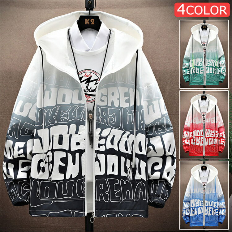 マウンテンパーカー メンズ 秋服 オシャレ アウター ウインドブレーカー ジップアップ ジャケット グラデーション ハイネック 薄手