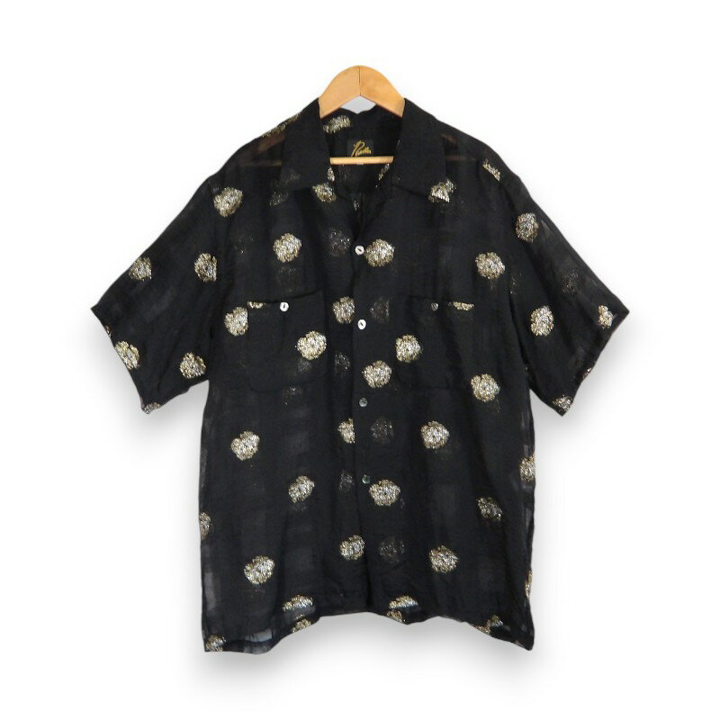 NEEDLES 23ss S/S One-Up Shirt CU/C/N/PE Oriental Lame Jq. BLACK サイズXL MR117 ニードルス 半袖 ワンナップ シャツ オリエンタルラメ ジャガード 大名店【中古】