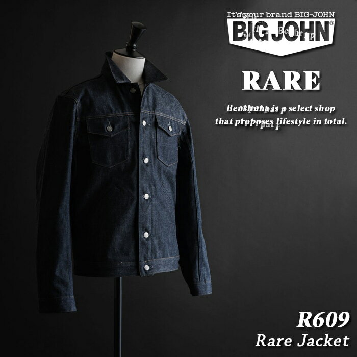 BIG JOHN ビッグジョン 『 RARE JACKET 』 レア リジッドデニム ジャケット R609 プレミアムコレクション 生デニム ノンウォッシュ リジッド セルビッチ 綿100% Gジャン デニムジャケット 日本製 国産 岡山 倉敷 ブランド 坂本藍屋 ヴィンテージ 育てるデニム