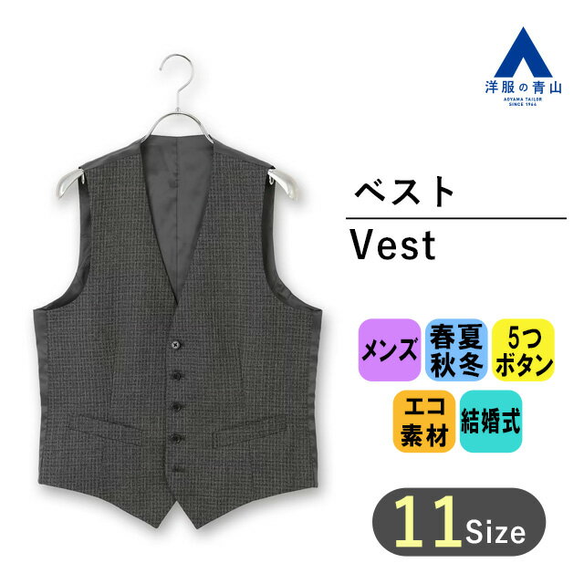【洋服の青山】グレー系 セレモニーベスト【シングル】 だけ RARE BLACK メンズ ビジネス カジュアル 5ボタンエコ素材 ドレスアップ フォーマル サイズ豊富 結婚式 パーティー セレモニー お祝いの席 ジレ Vゾーンを引き締め 織柄 おしゃれ かっこいい