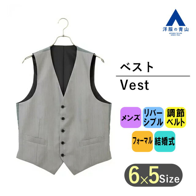【洋服の青山】リバーシブルベスト だけ ジレ メンズ 春夏 秋冬 グレー 灰色 / ブラック 黒無地 ウエスト調節ベルト 光沢 華やか フォーマル 結婚式 披露宴 2次会 パーティ 式典 会食 セレモニー 男性 50代 40代 30代 20代 トップス 表裏 2WAY RARE BLACK