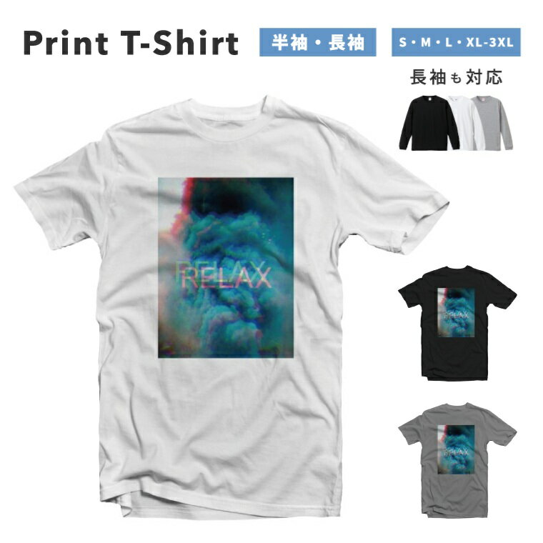 Tシャツ メンズ 半袖 長袖 おしゃれ プリント 綿100% 大きいサイズ 小さいサイズ レディース コットン ブラック ホワイト グレー カジュアル ファッション 5.6オンス 白Tシャツ 黒Tシャツ 推し かわいい RELAX リラックス 3D 煙 SMOKE 蛍光 青 かわいい