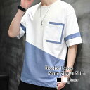 Tシャツ メンズ バイカラールーズ半袖シャツ おすすめ 夏 人気 ロング コットン ブランド 肌着 カジュアル ワッフル おしゃれ オシャレ ジャケット 7分袖 ブラック シャツ 40代 ポリエステル 半袖 ゆったり スポーツ インナー 春 ティーシャツ 涼しい 綿 薄手 Vネック