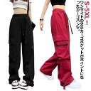 カーゴパンツ レディース ワイドパンツ ダンスパンツ ストラップ付き ワンポイント ウエストゴム ボトムス ロングパンツ 赤 黒 ダンス 衣装 ヒップホップ コスチューム 韓国ファッション 大きいサイズ 個性的 服 パンツ ダンス練習 hiphop 送料無料