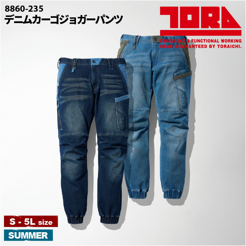 寅壱 デニムカーゴジョガーパンツ 8860-235 8860SERIES [ ズボン パンツ カーゴ カーゴパンツ ジョガー 裾絞り デニム アシンメトリー 遮熱 ストレッチ 吸汗 男物 TORA ]