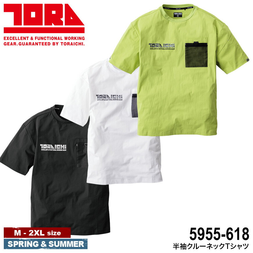 寅壱 5953-618 半袖クルーネックTシャツ S-XL 吸汗速乾 再帰性反射 消臭テープ付 抗ピリング UVカット 機能糸トリコット素材 トライチ TORAICHI