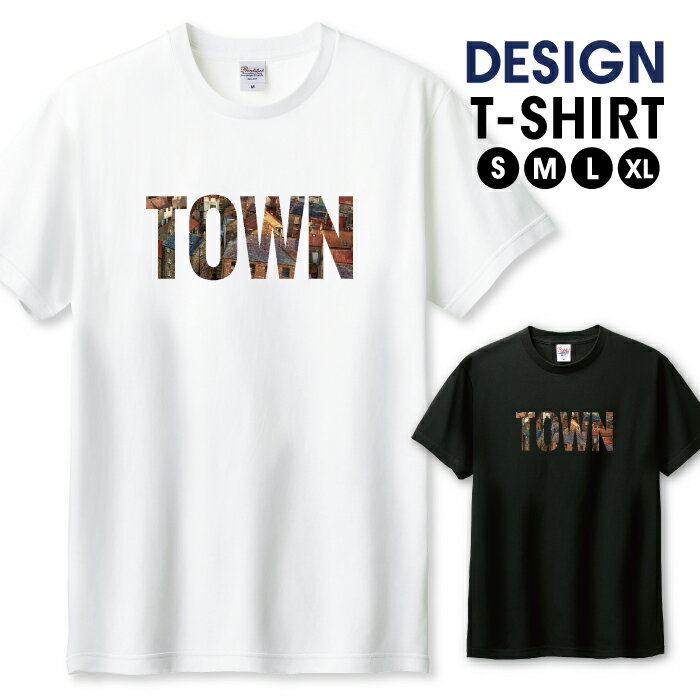 30%割引クーポン★ブラックフライデー★ Tシャツ メンズ ユニセックス TOWN シンプル ロゴ オシャレ アメカジ かっこいい サイズ S M L LL XL 半袖 綿 100% コットン 人気 ゆったり 白Tシャツ 黒Tシャツ ホワイト ブラック 長持ち プリントtシャ