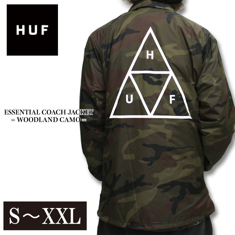 HUF ハフ コーチジャケット ESSENTIAL COACH WOODLAND CAMO JACKET 大きいサイズ アメリカンサイズ メンズ スケーター ファッションライトアウター トリプルトライアングル デザイン コーチジャケット お洒落 ストリート アウター ZOZO TOWN ZOZOTOWN ゾゾタウン