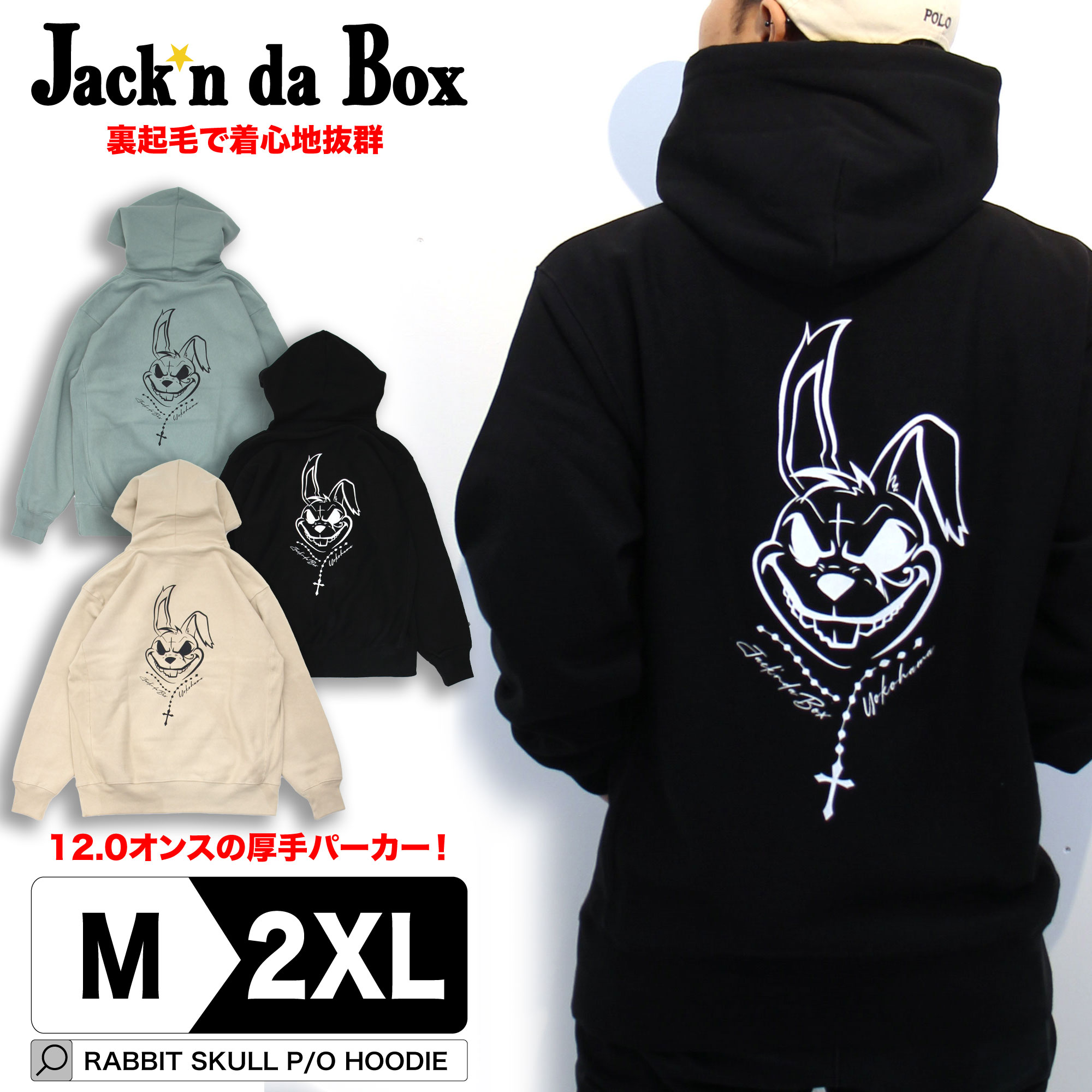Jack'n da Box パーカー メンズ 12オンスの肉厚 プルオーバー 裏起毛 HOODIE PULLOVER トップス かぶり コーデ ストリート 大きいサイズ M-2XL 全3色 ブラック ミント サンド オシャレ かっこいい メンズファッション zozo town ゾゾタウン ZOZOTOWN スカル うさぎ