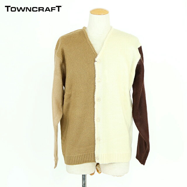 タウンクラフト(TOWN CRAFT)メンズ カーディガン ブラウン系 Vネック 3色使い (サイズ/S)*rp0010