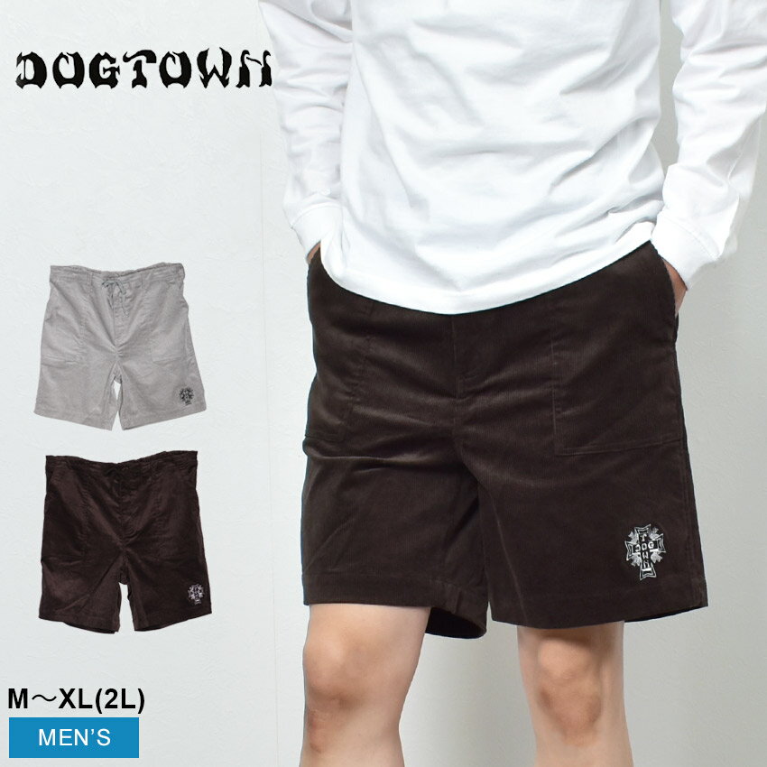 ドッグ タウン ハーフパンツ メンズ DOG TOWN クロス ロゴ コーデュロイ ショーツ 短パン ハーフパンツ ドローコード 細畝 コーデュロイ クロス ロゴ スケート スケボー スケートボード ストリート シンプル カジュアル ワンポイント 刺繍
