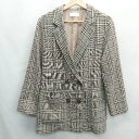 【中古】UNE MOTOMACHI KOBE Tessuti Di Sondrio生地 ツイード ジャケット テーラード ブレザー くるみボタン AB6 ブラウン系 【ベクトル 古着】 250818