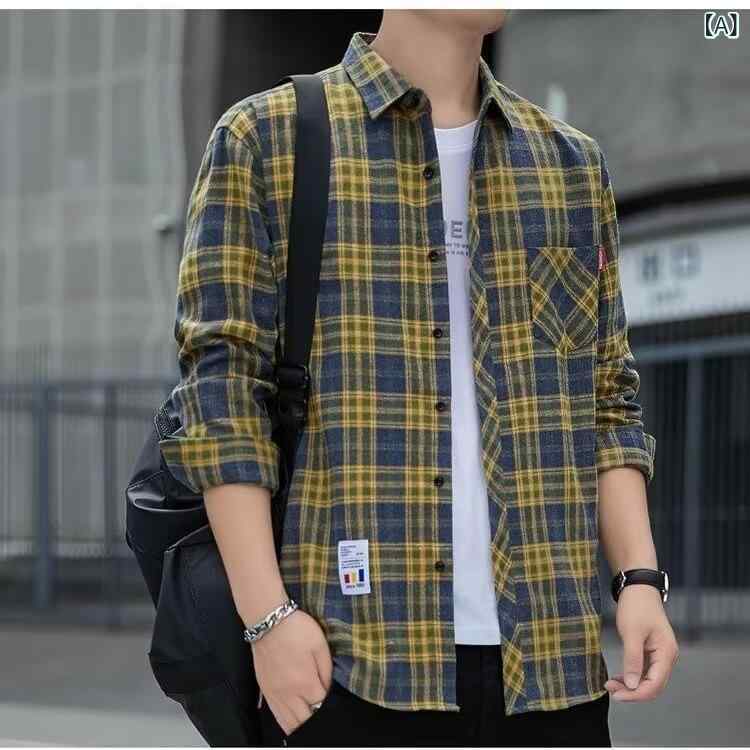 メンズ シャツ 長袖 レトロ チェック柄 春秋 カジュアル ゆったり フィット 高級感 トップス アウター 普段使い 軽量