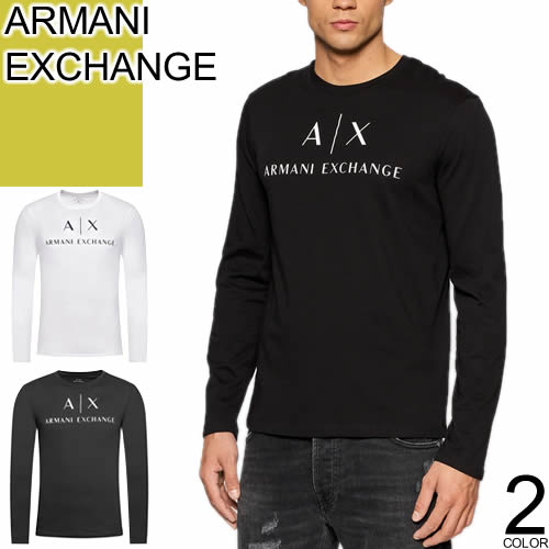 アルマーニ エクスチェンジ ロンT メンズ Tシャツ カットソー 長袖 ブランド ロゴ プリント 綿100% クルーネック 丸首 大きいサイズ 黒 白 ブラック ホワイト LS ARMANI EXCHANGE T-SHIRT WITH LOGO PRINTS 8NZTCH Z8H4Z9 [ネコポス発送]