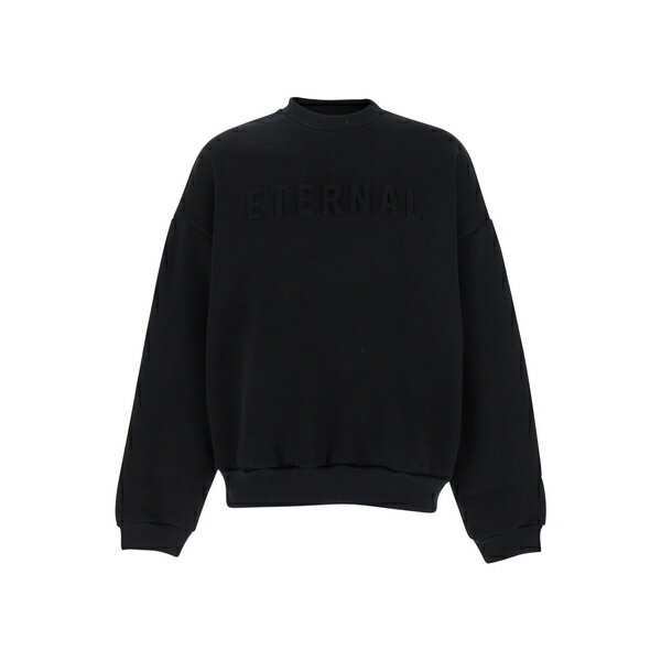フィアオブゴッド メンズ パーカー・スウェットシャツ アウター Black Crewneck Sweater With Tonal Logo Lettering Embroidery On The Front In Cotton Blend Man Black