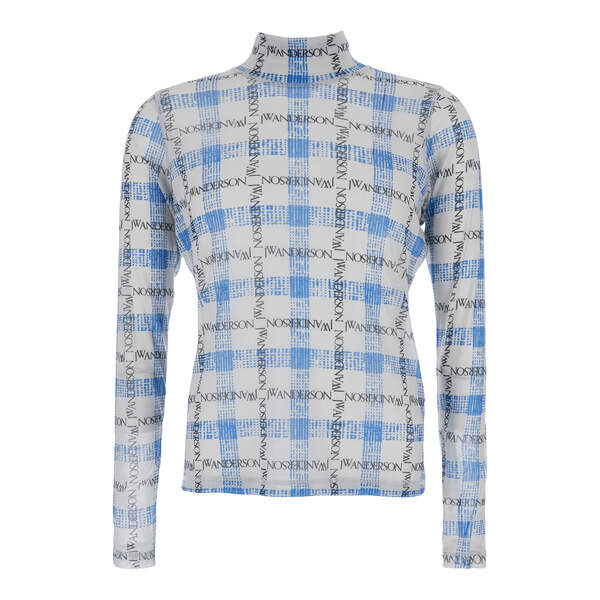 J.W.アンダーソン メンズ ニット&セーター アウター Light Blue Turtleneck T-shirt With All-over Check Motif And All-over Logo Print In Tech Fabric Stretch Man Light blue