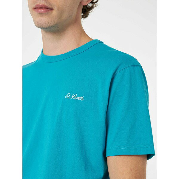 エムシーツーセイントバース メンズ Tシャツ トップス Man Teal Cotton Jersey T-shirt Dover With St. Barth Embroidery GREEN