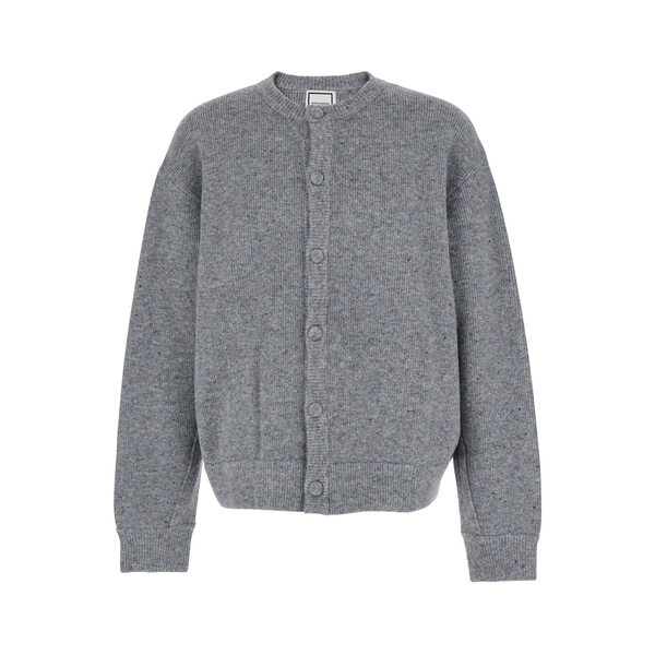 ウーヨンミ メンズ ニット&セーター アウター Grey Crewneck Cardigan With Logo Detail On The Rear In Wool Blend Man Grey