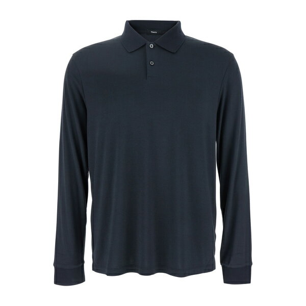 セオリー メンズ ポロシャツ トップス 'goris' Black Polo Shirt With Classic Collar And Long Sleeves In Tech Fabric Stretch Man Black