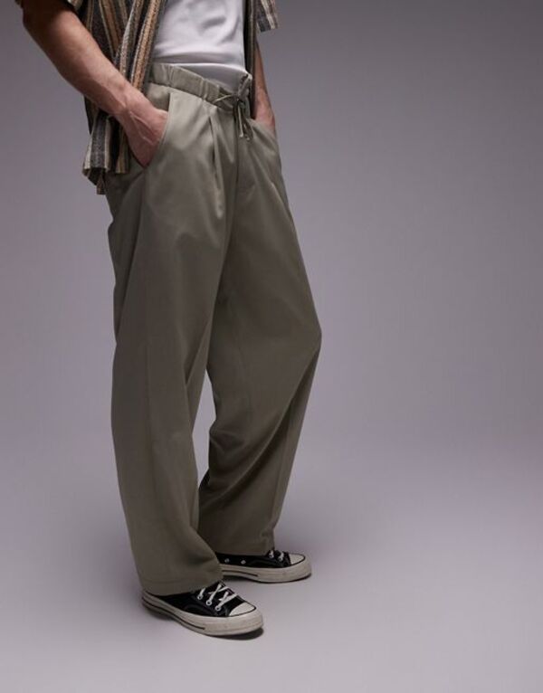 トップマン メンズ ボトムス カジュアルパンツ ワイドレッグ パンツ スウェットパンツ Topman wide leg with elastic tie waist sweatpants Khaki カーキ
