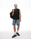 トップマン メンズ ボトムス ハーフパンツ・ショーツ ストレート ショートパンツ デニム Topman denim straight leg shorts with raw hem in washed WASHED BLACK ブラック