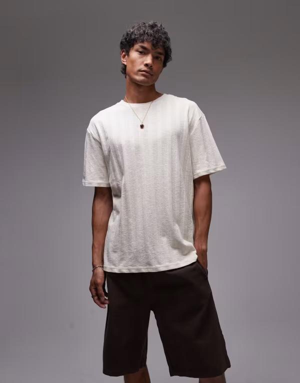 トップマン メンズ トップス Tシャツ オーバーサイズフィット シャツ Topman oversized fit T-shirt with vertical textured stripe in ecru ECRU エクリュ